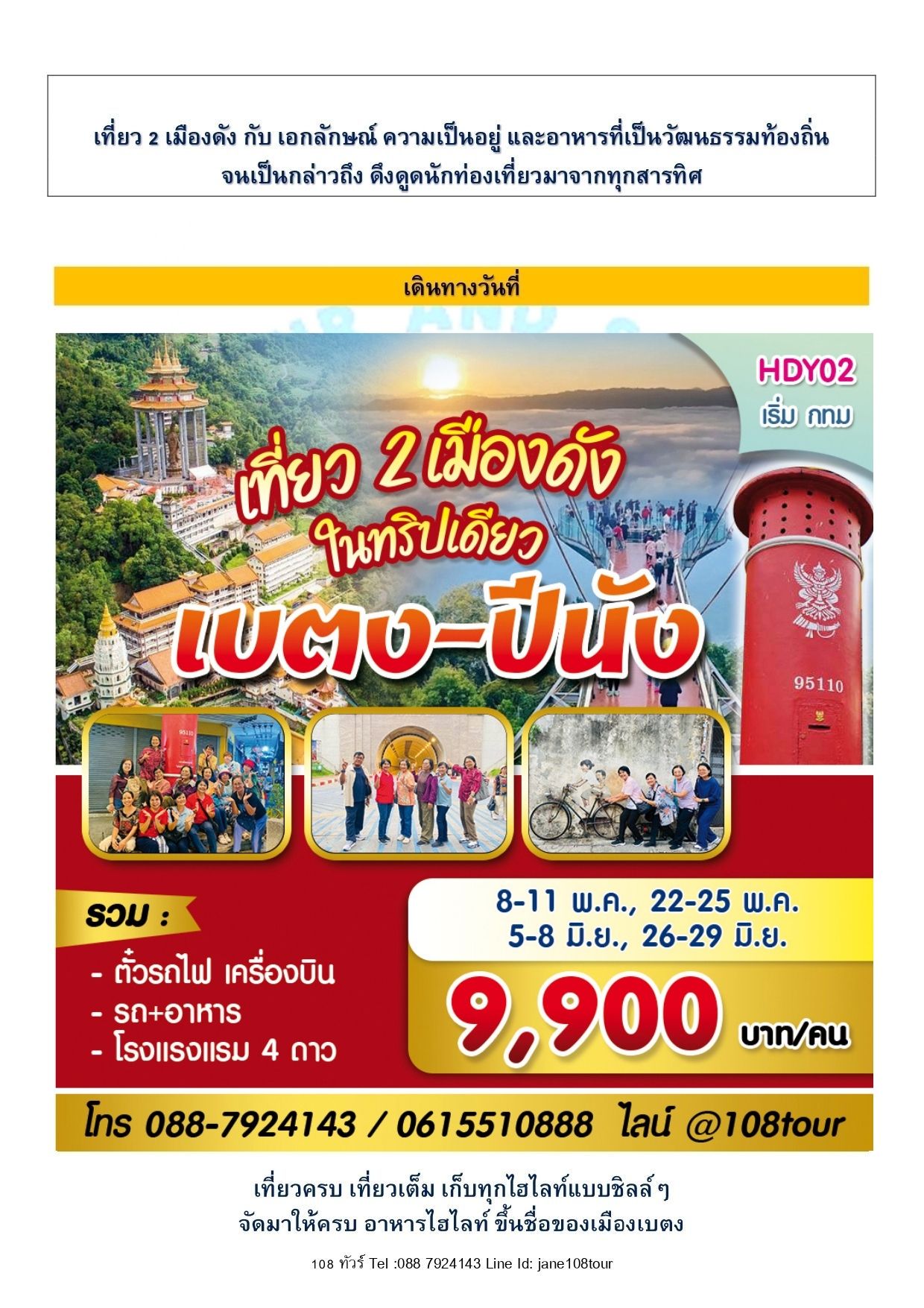 | 8 – 11 พ.ค. 2569 22 – 25 พ.ค. 2569 | 9,900 | 2,000 |